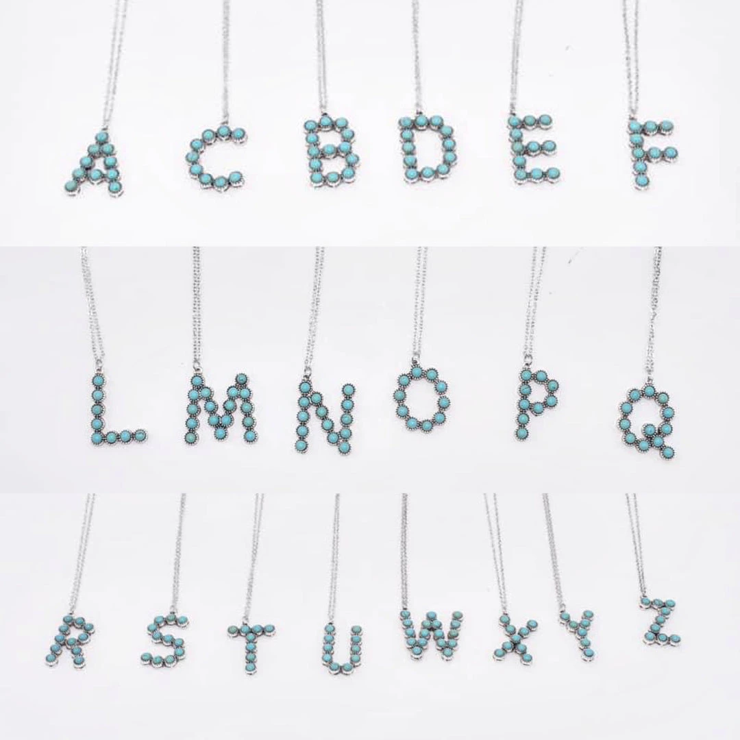 Finally, a super affordable turquoise stone initial necklace. Full turquoise stones set in silver on an adjustable 18 inch silver chain with 2 inch extender.