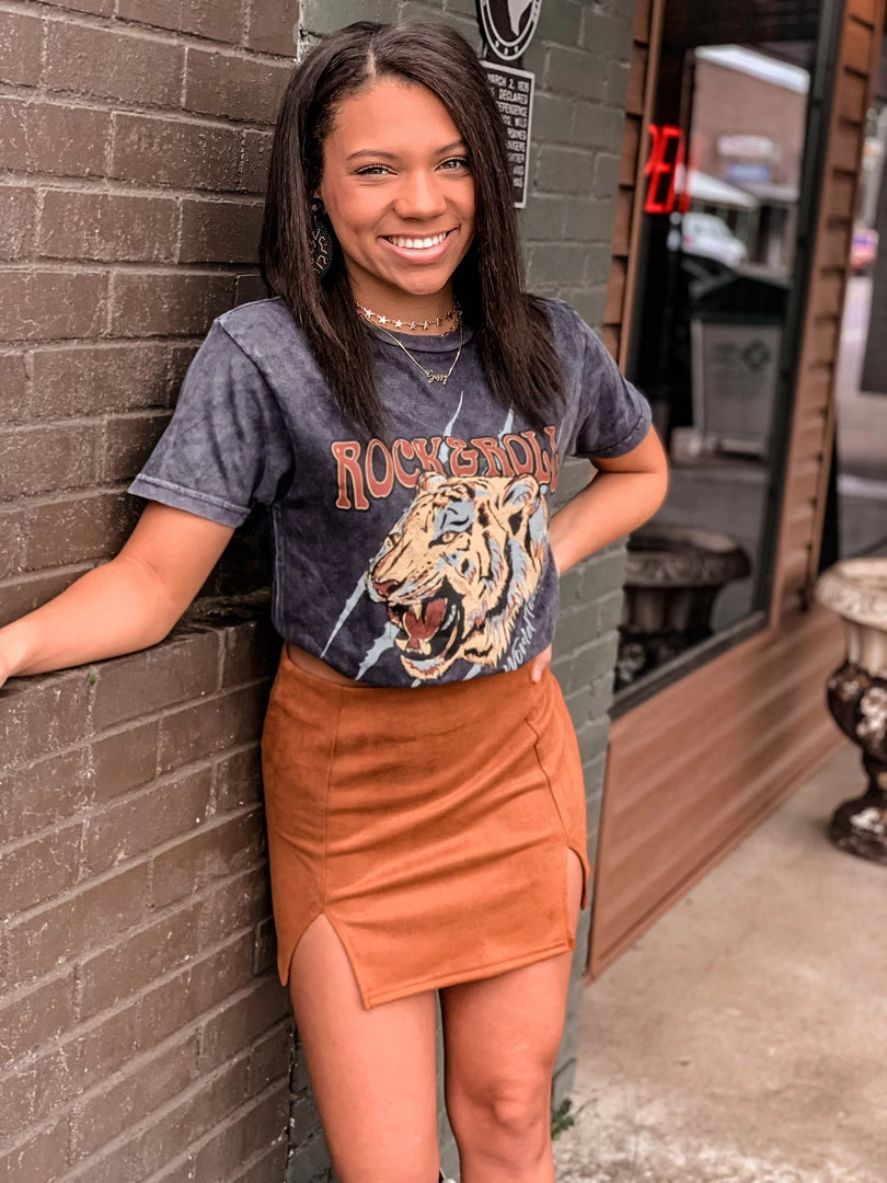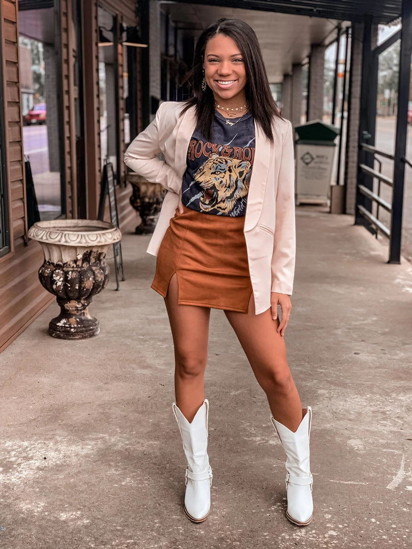 - Mini skirt with two front side slits detail and fitted silhouetteÂ