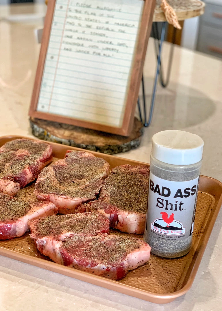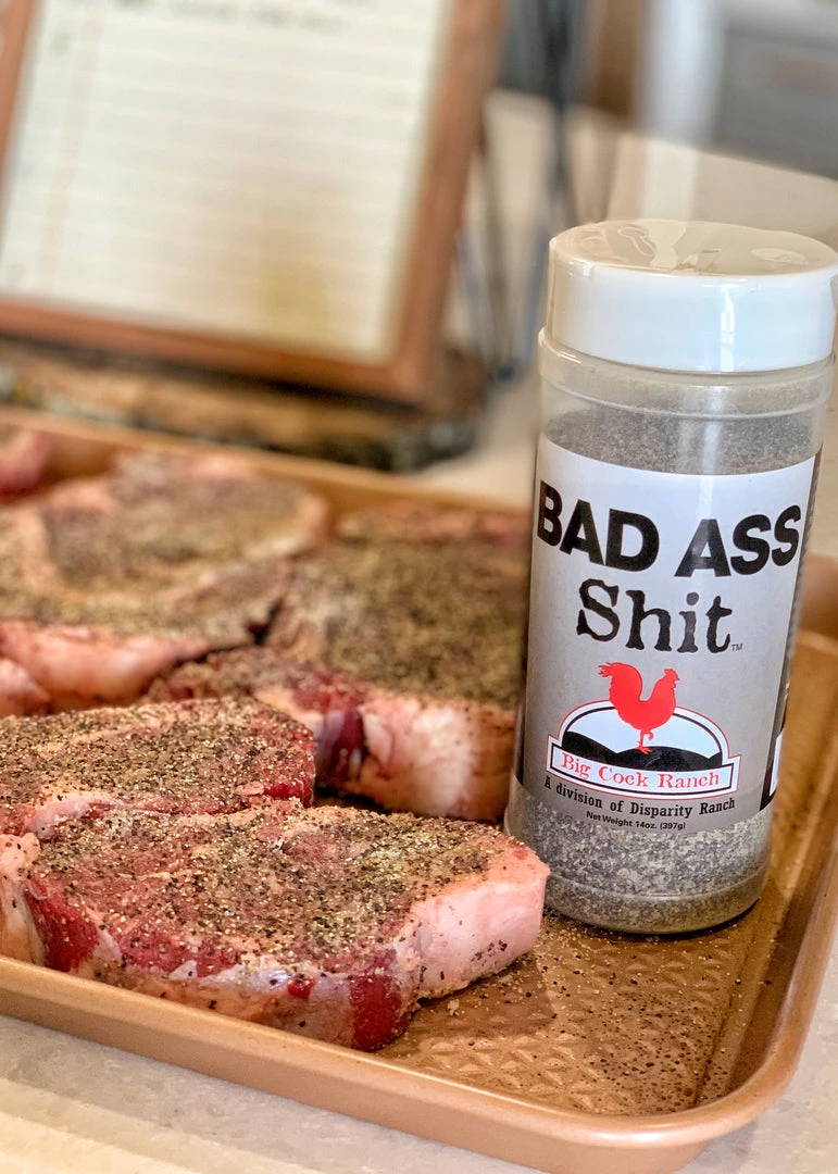 We care about what you put into your body. And we are not just bragging when we say Bad A** Sh*t is some fan-damn-tastic Sh*t. Wholesome ingredients and just the right blend make for a, dare I say, perfect Sh*t for all meats (including chicken and hippopotamus). Enjoy the lip smacking, tender, moist meat you’ll get when using Bad A** Sh*t. And remember, it does make a difference what seasoning you use. Now’s the time to have yours “Shaken, not stirred.”Â