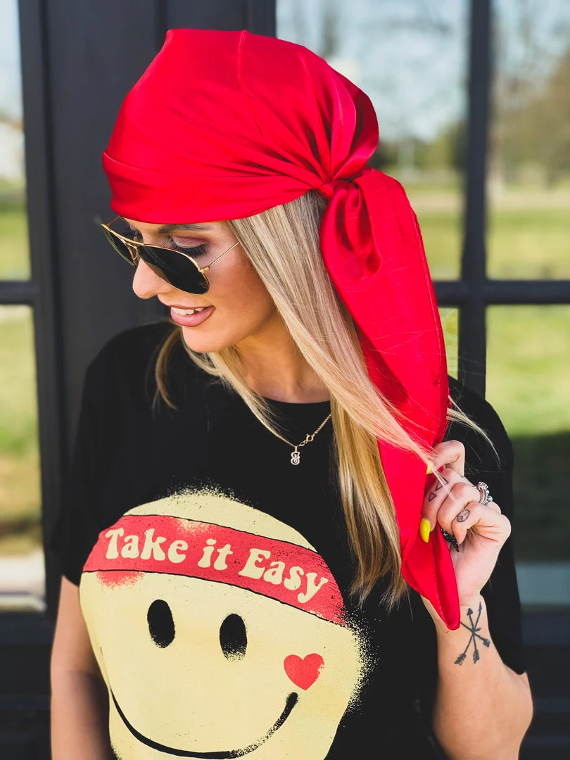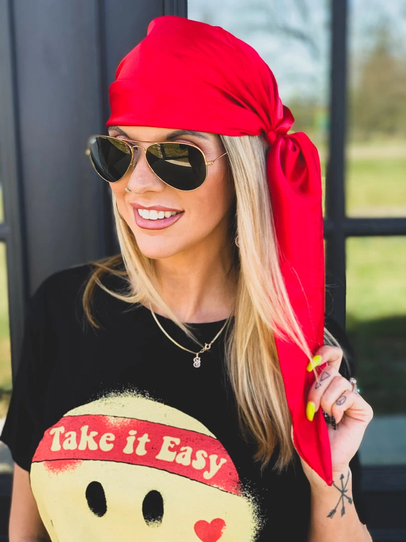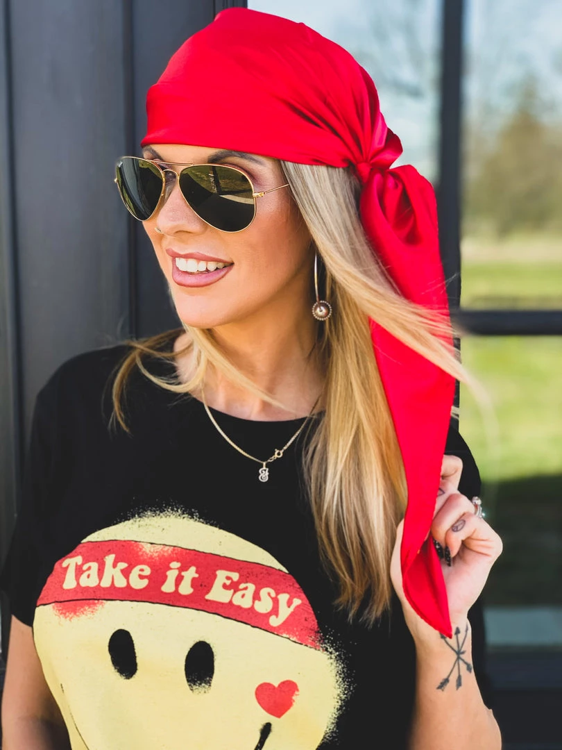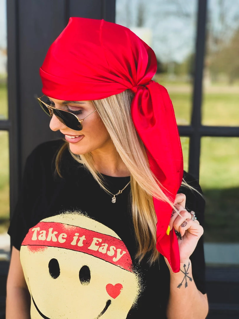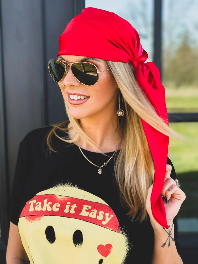 Beautiful vivid red silk wild rag is the perfect all around accessory. Has the perfect silky shine. Tie it around your wrist, belt loop, in your hair as a head wrap, or wear it as a western wild rag around your neck. SO many different CUTE ways to incorporate this babe in your outfits. Stand out with our new bandana!