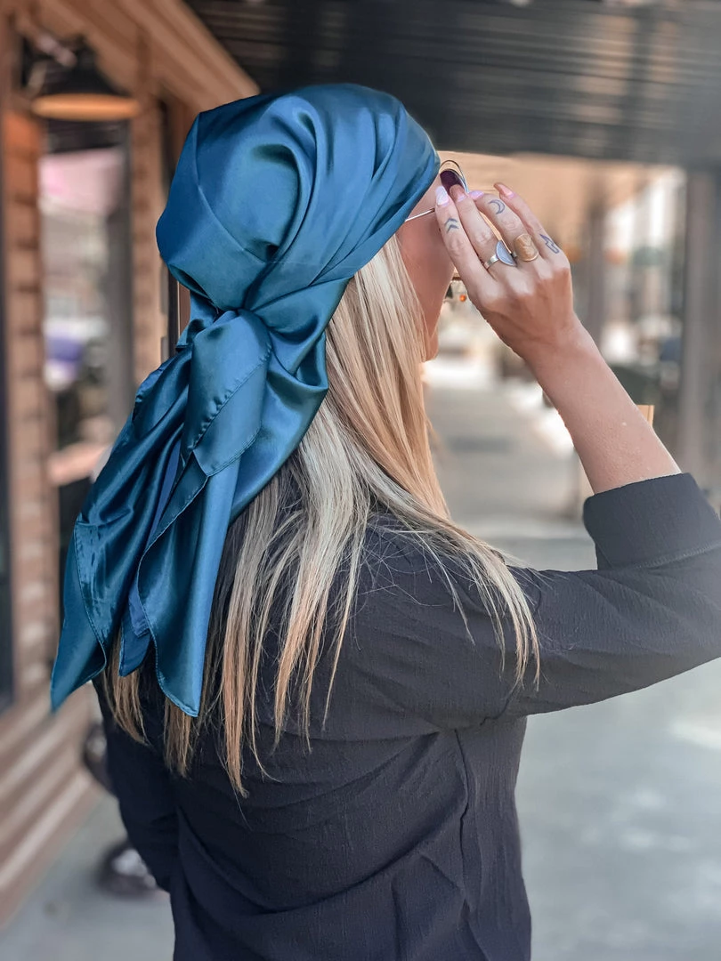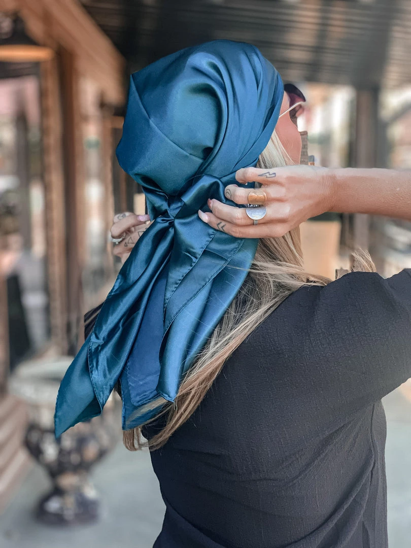 Beautiful teal silk wild rag is the perfect all around accessory. Has the perfect silky shine. Tie it around your wrist, belt loop, in your hair as a head wrap, or wear it as a western wild rag around your neck. SO many different CUTE ways to incorporate this babe in your outfits. Stand out with our new bandana!