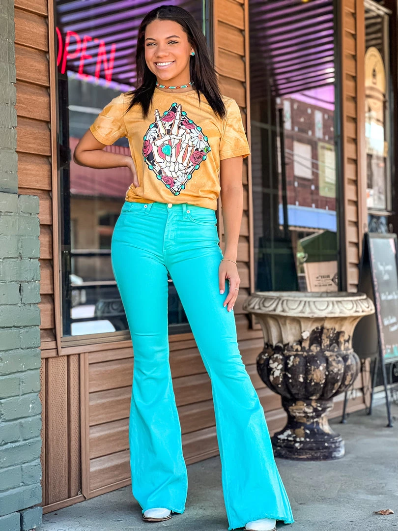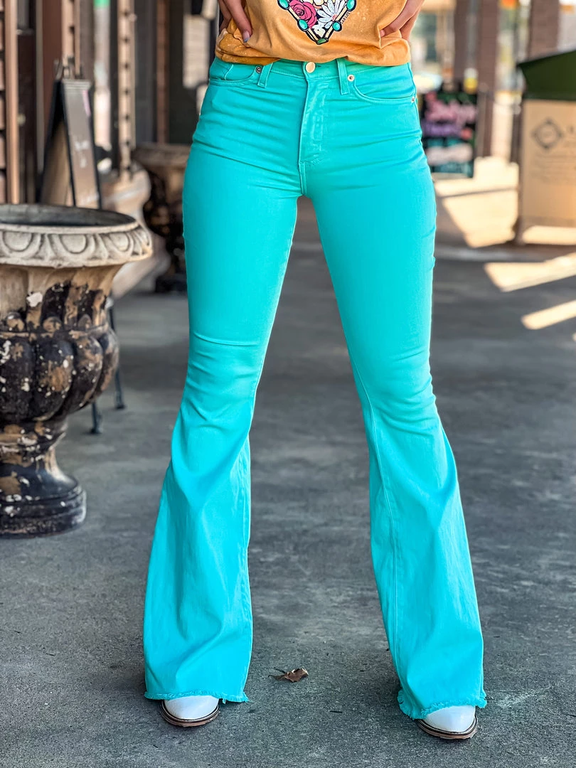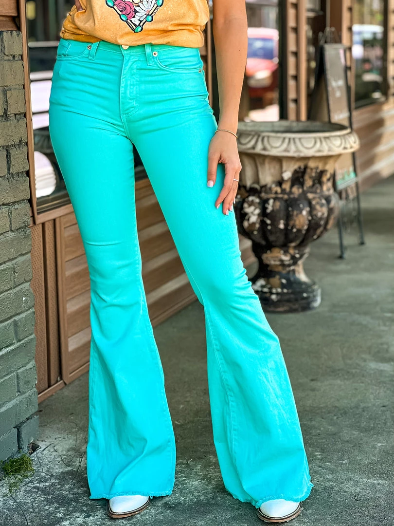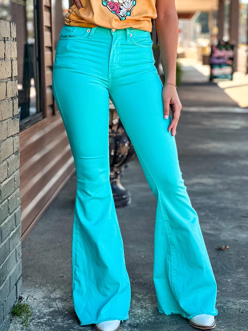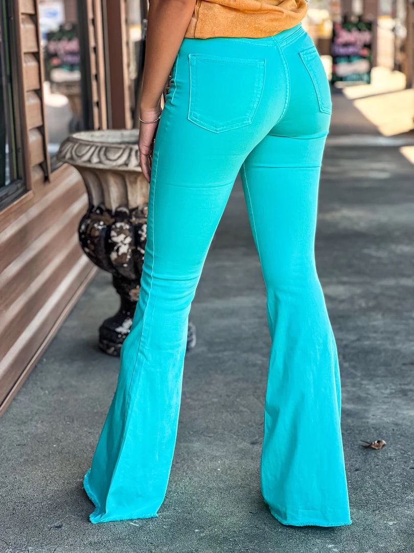 - Must have turquoise denim bell bottoms