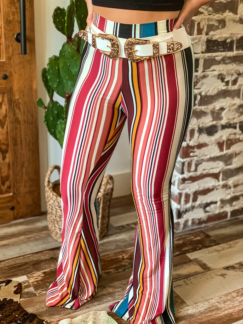 The perfect flares just landed! Multicolor striped fitted flare super soft bell bottoms. Features a high-waisted elastic waistband, a vertical striped color patterns, a fitted style, and the cutest flare. Colors vary from mauve pink, maroon/red, teal, white, mustard, black, and green. Perfect stay cute and comfy for all your GNO’s!