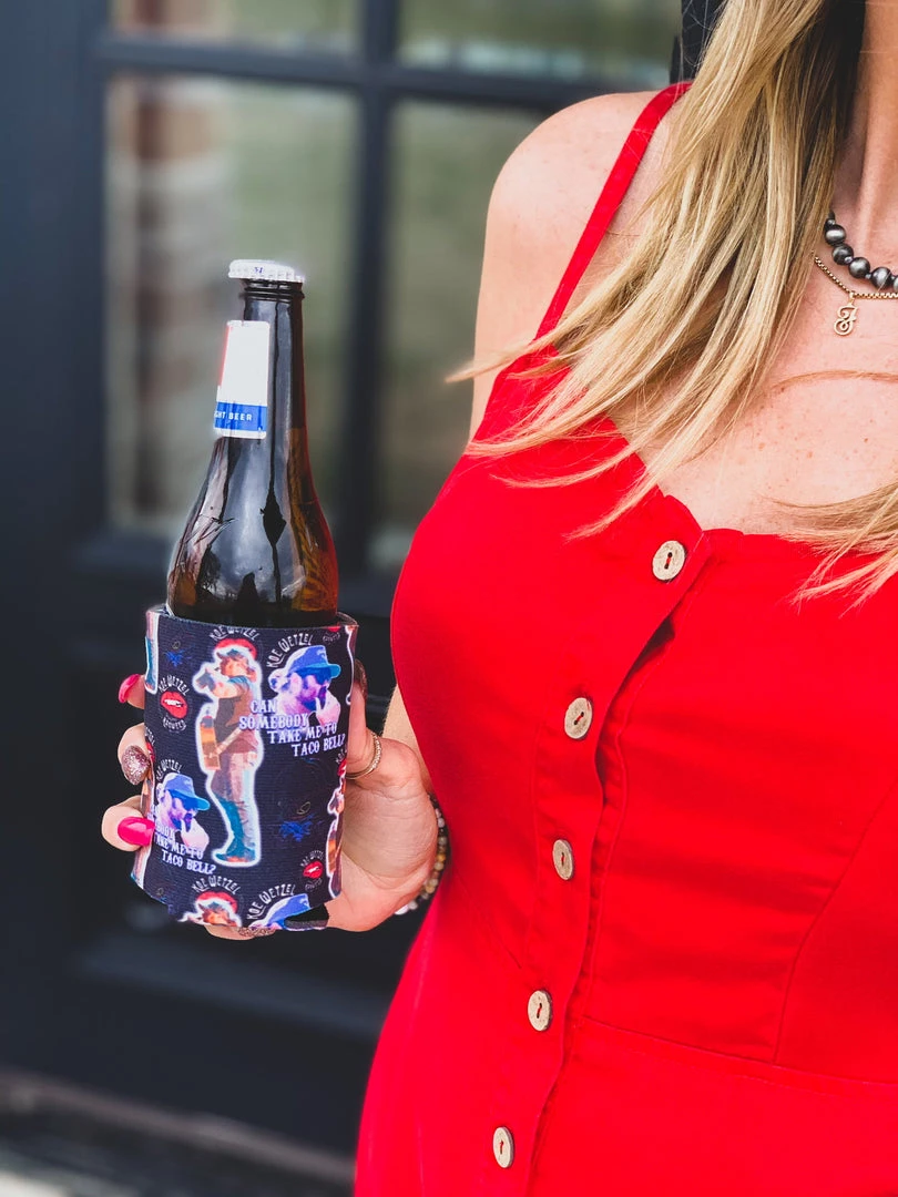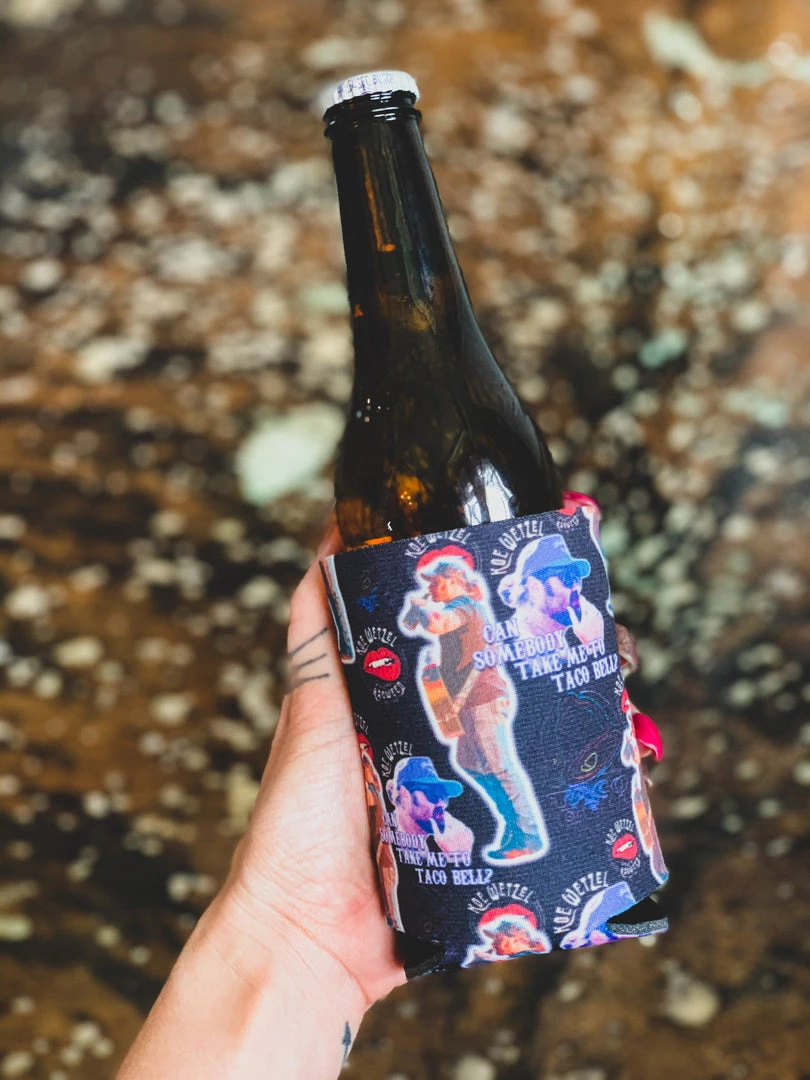 Perfect Koe Wetzel can coolie. Coolie features pictures of Koe and the quote, “Can somebody take me to Taco Bell?” Perfect coolie to keep all your fav drinks cold and so fun!