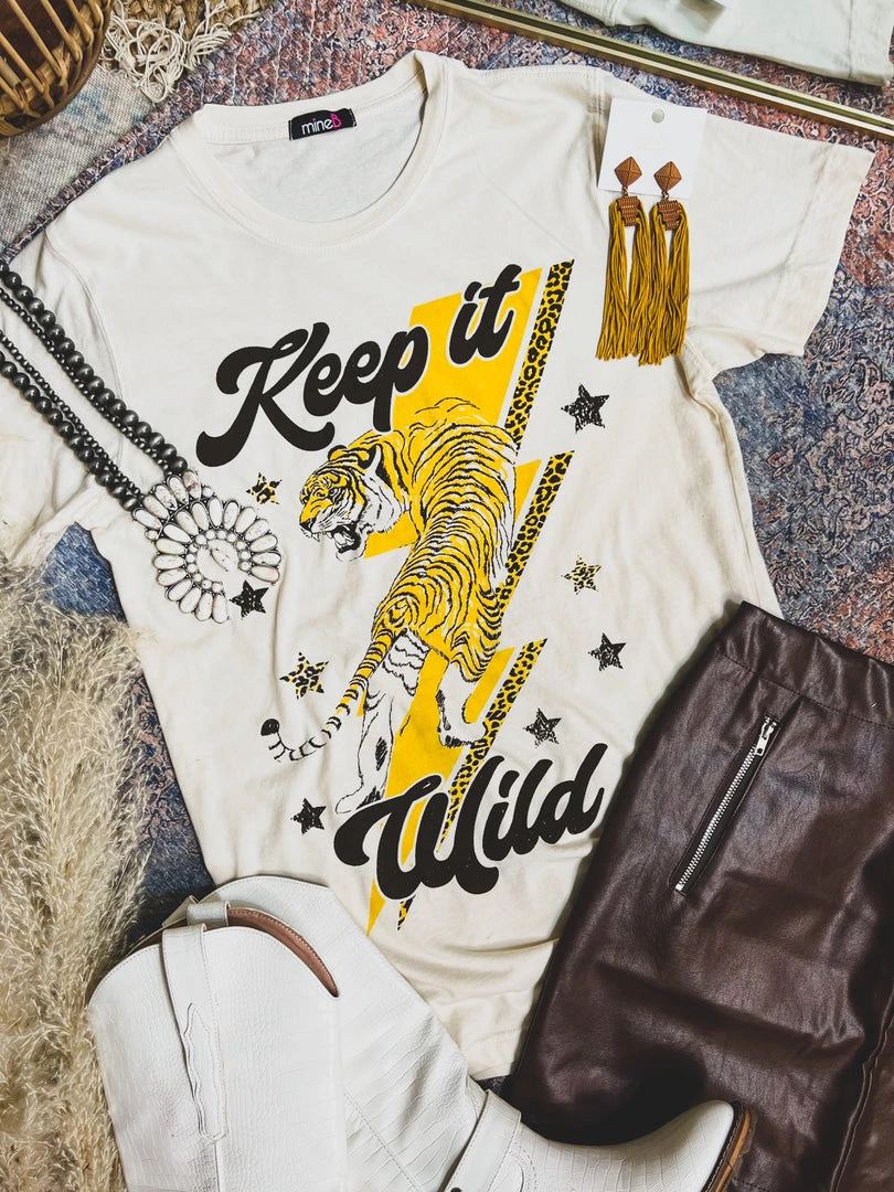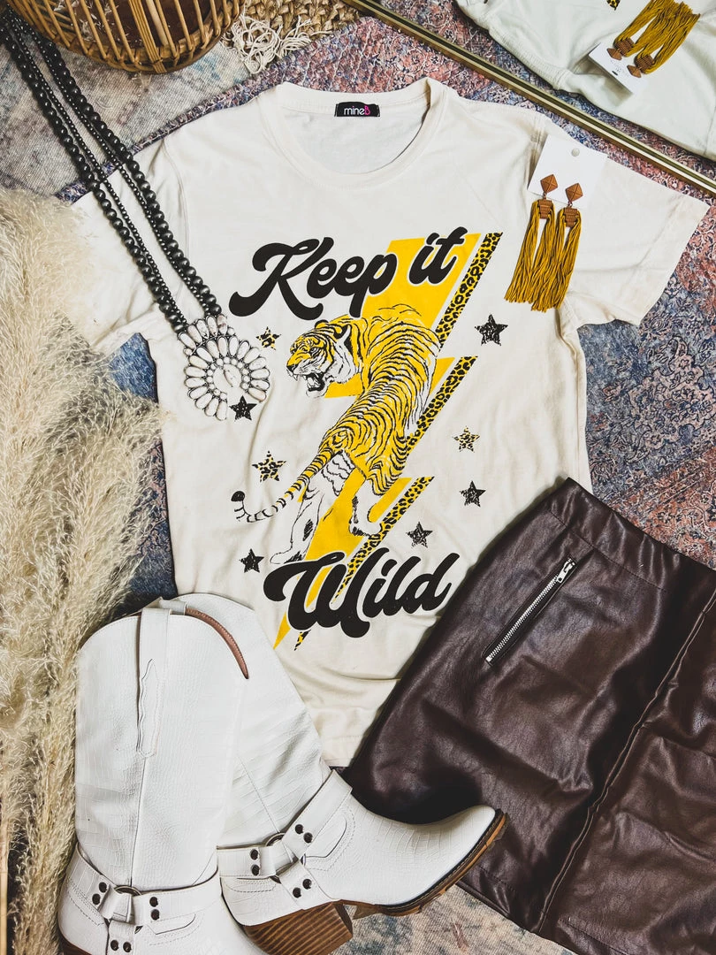 - Retro vintage “Keep It Wild” quote on a ivory cream graphic tee