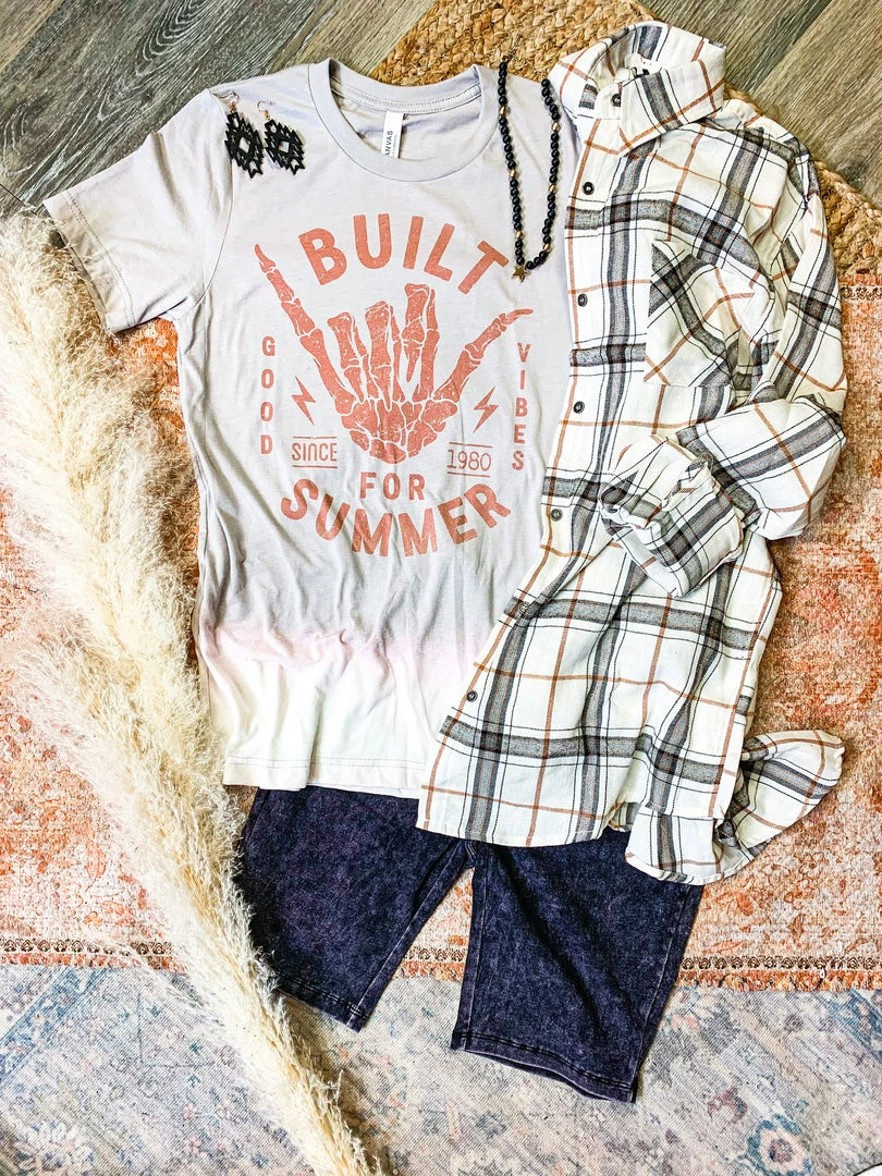 - Gray “Built For Summer” “Good Vibes” bleach graphic tee