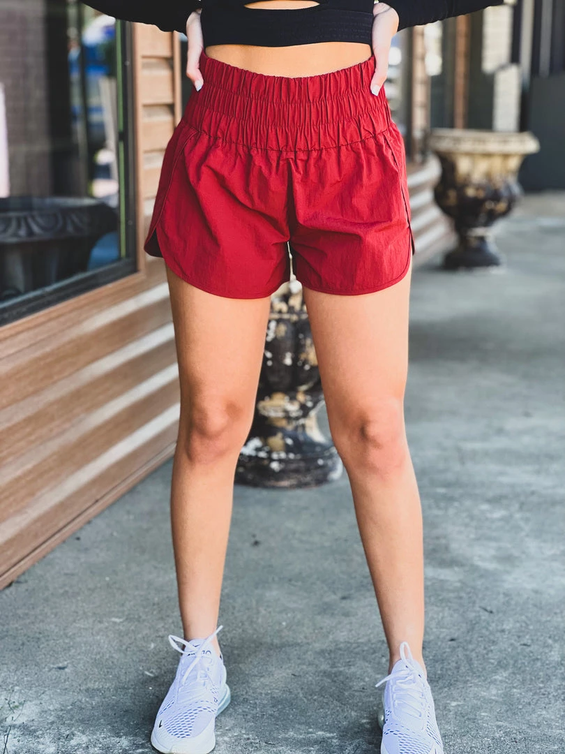 - Cute maroon windbreaker smocked waistband running style shorts