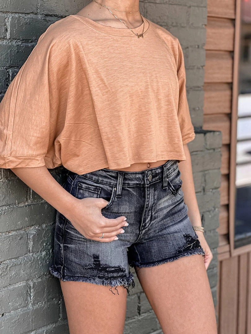 - Pair with distressed denim, leggings, sandals, or sneakers