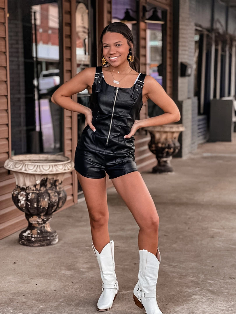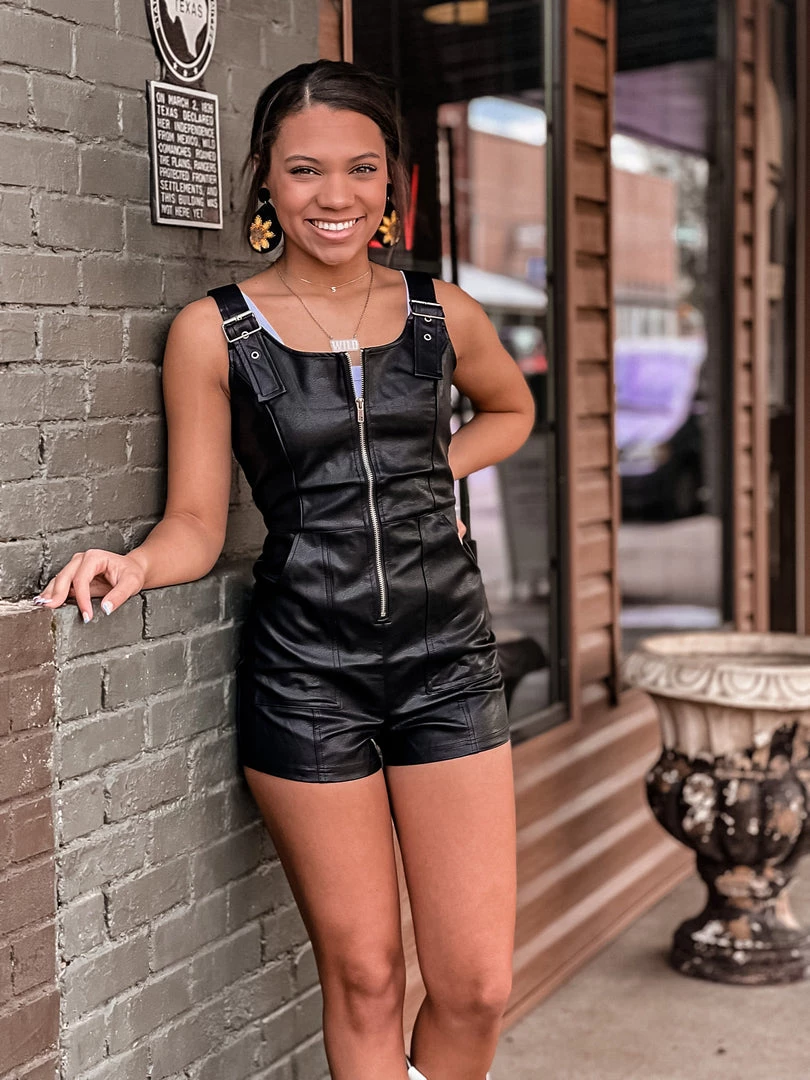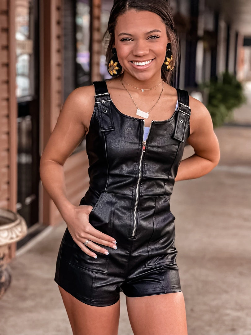 - Sleeveless with adjustable buckle straps, scoop neckline, front zip-up closure, side curved slip-in pockets, and a mini cute length