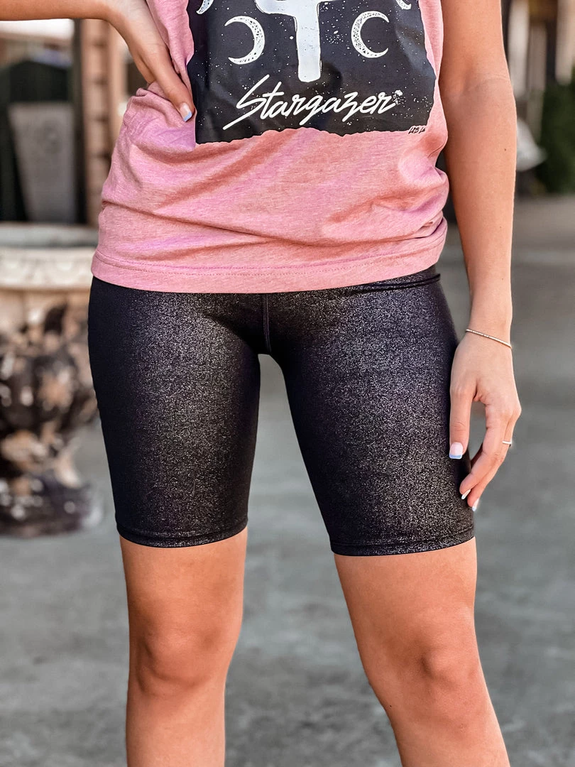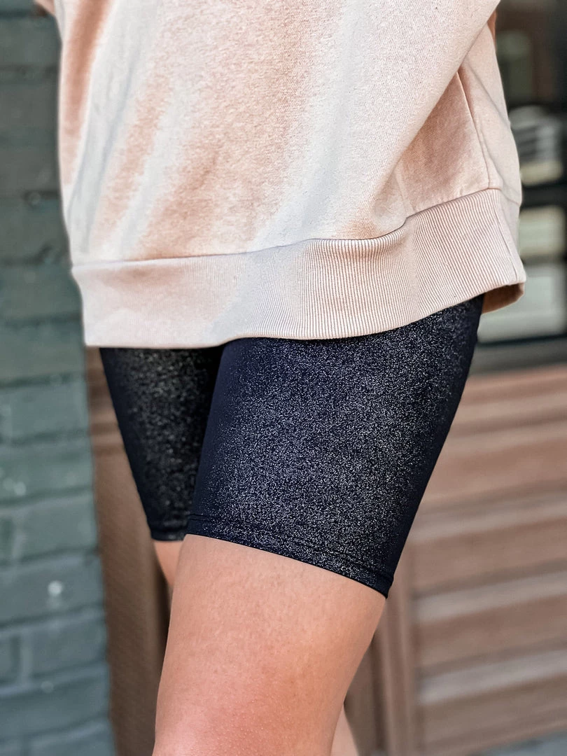 - Cute and comfy go to glitter black biker shorts