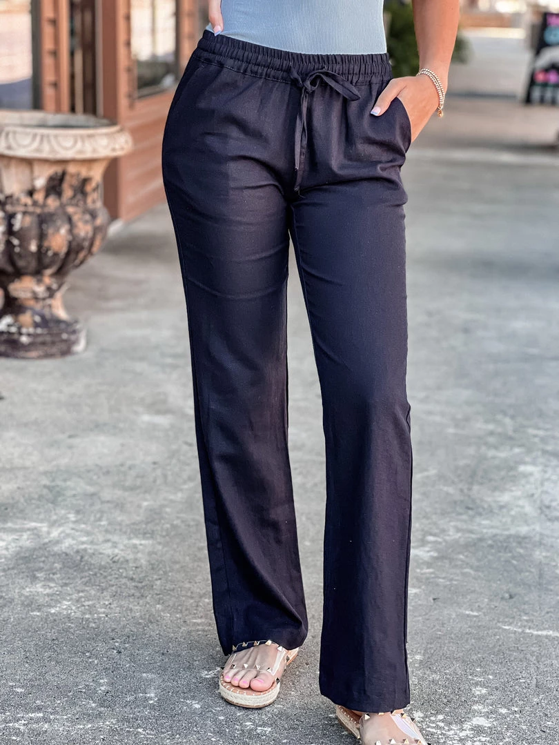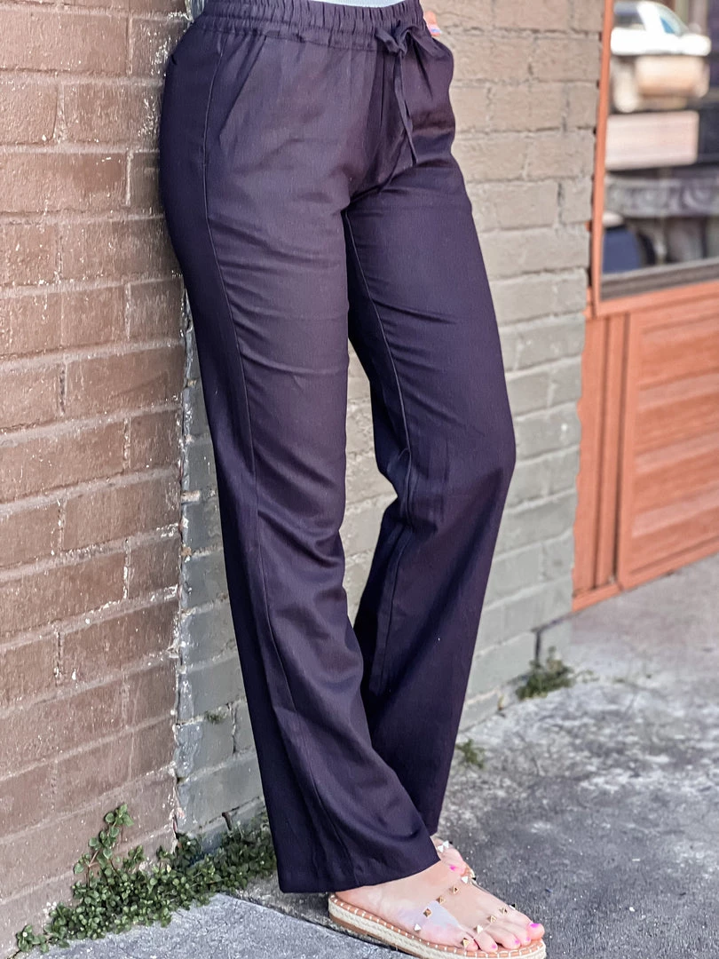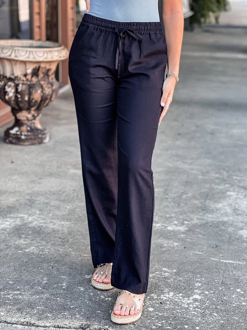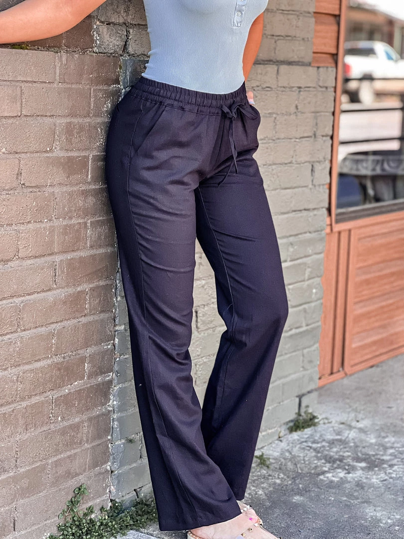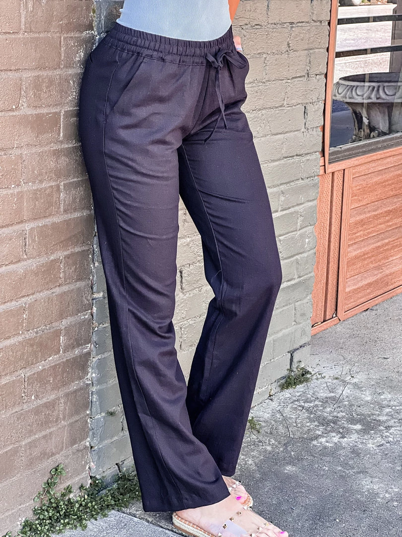 - Black linen woven relaxed chic pants