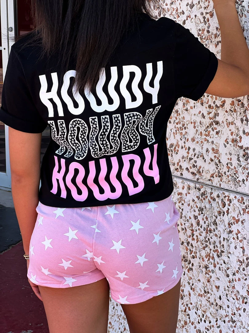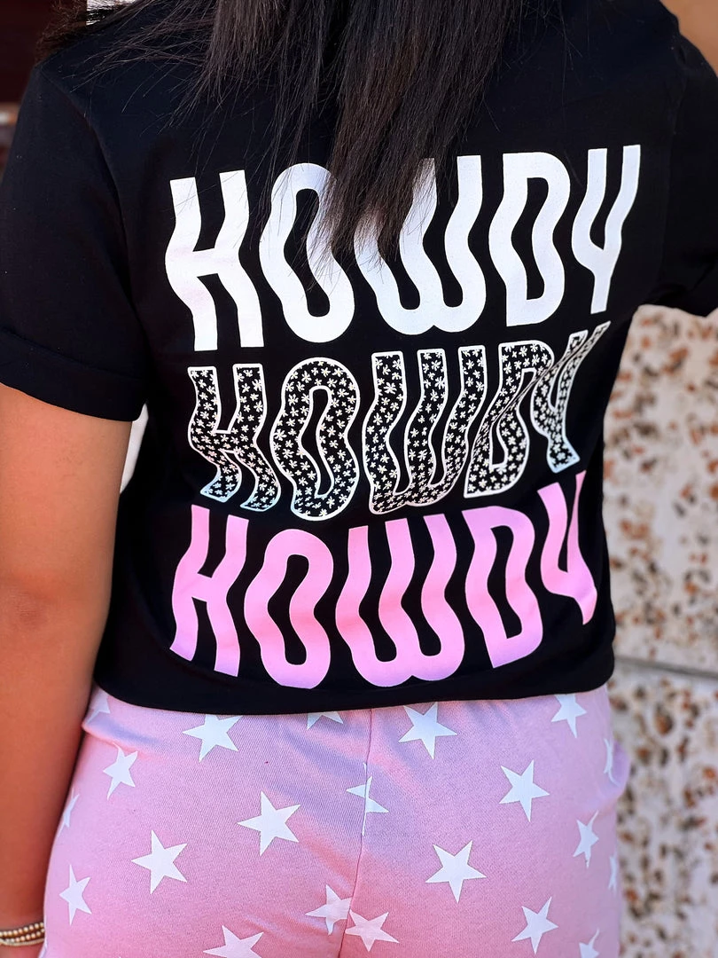 - Cute western “Howdy Howdy Howdy” on a black graphic tee