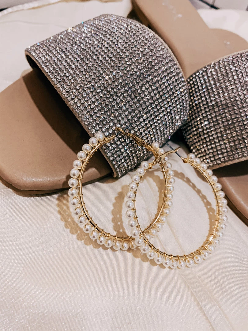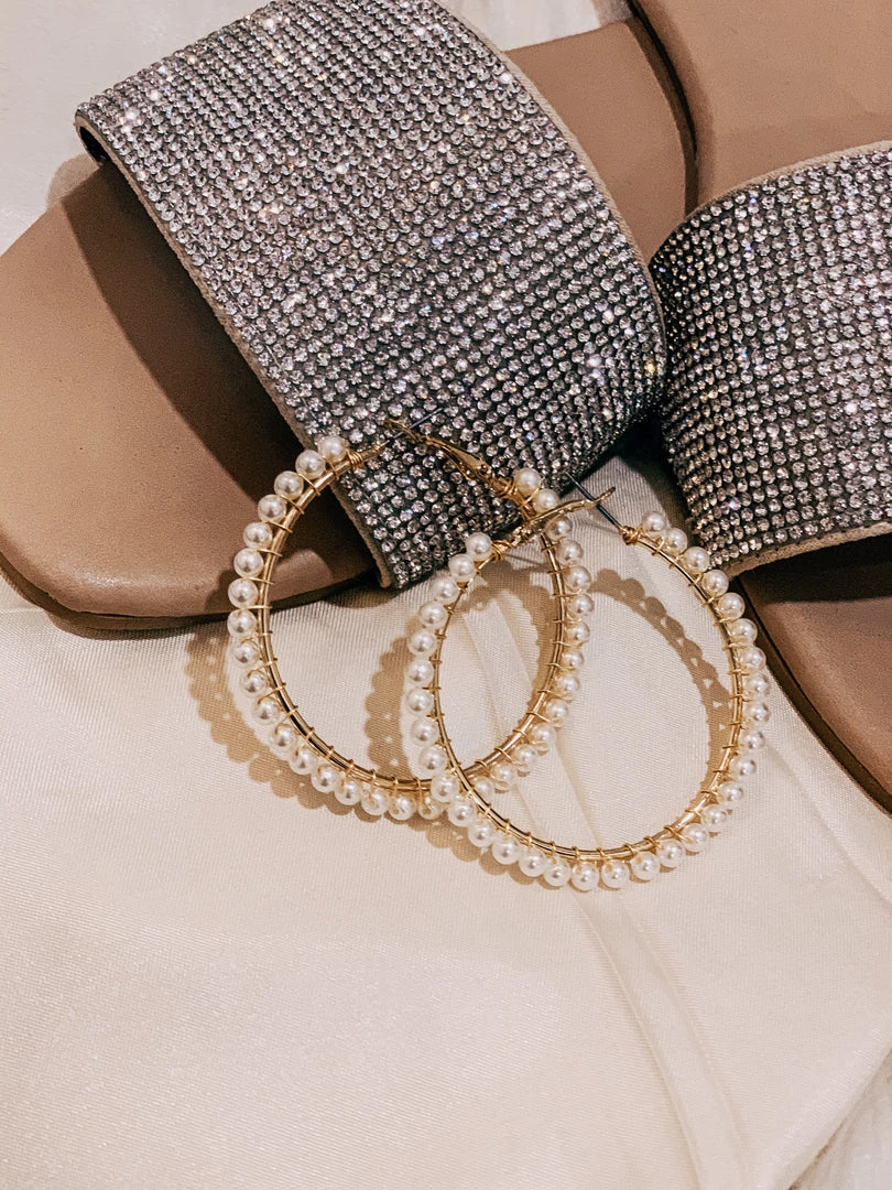Mini pearl hoops are light weight, fully pearled hoop, on a gold hoop, and super cute to add to any outfit. Earrings are light weight.