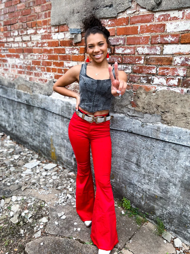 - Typically size 3 in jeans. Size small in tops, skirts & rompers.
