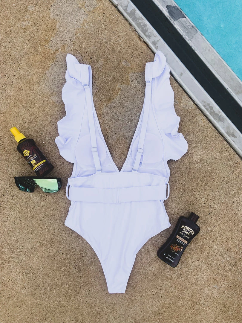 - White one piece ruffle bathing suit