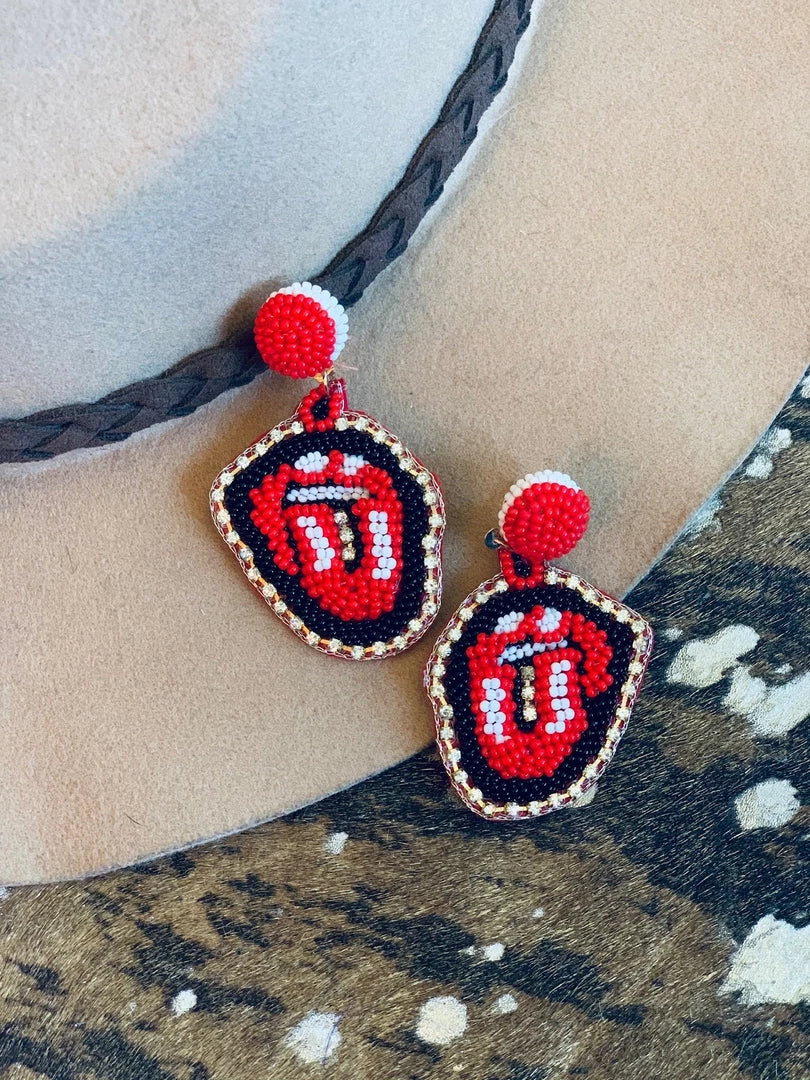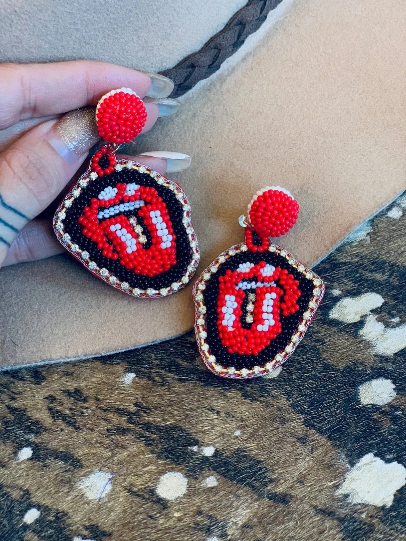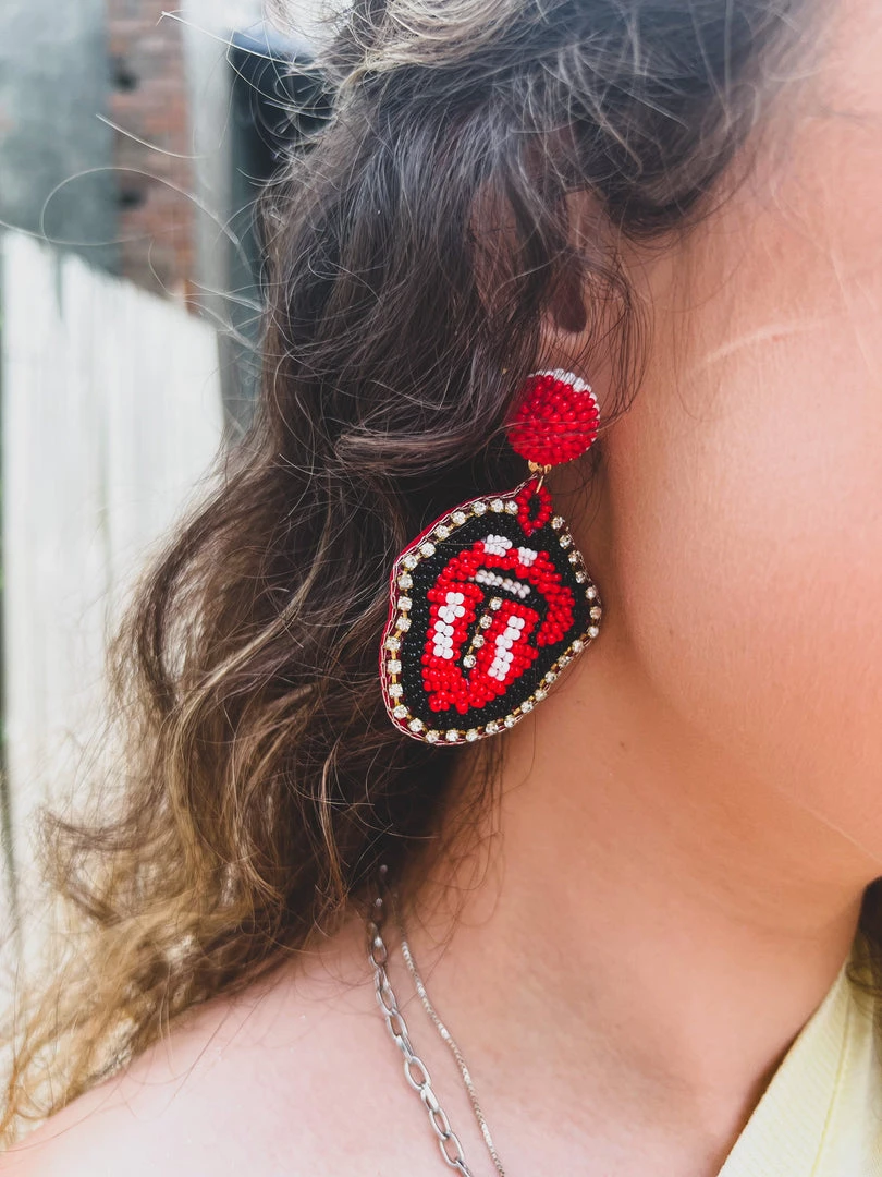 Red tongue beaded rhinestone mouth earrings on a red beaded post. SO SO cute and such a statement piece. Super light weight.Â