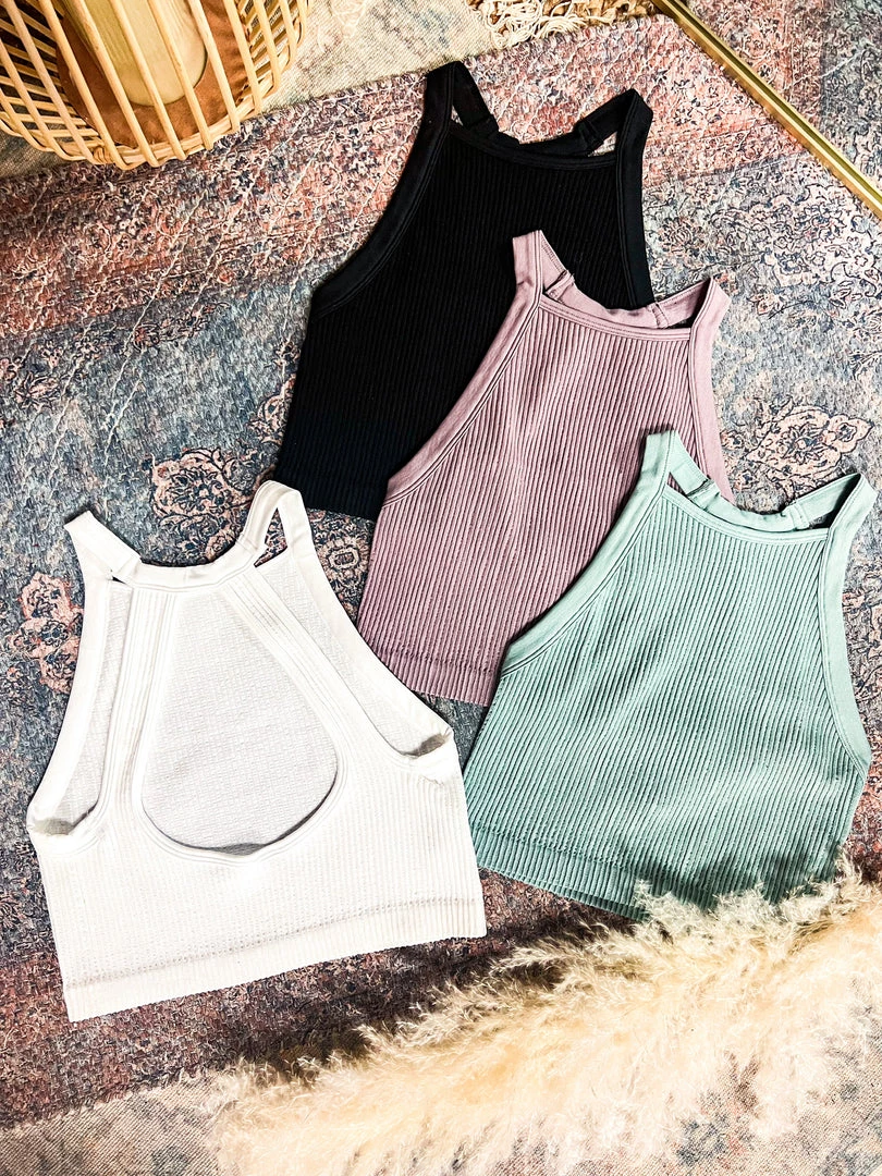 - Chic ONE SIZE ribbed halter neck crop top with a cute open back