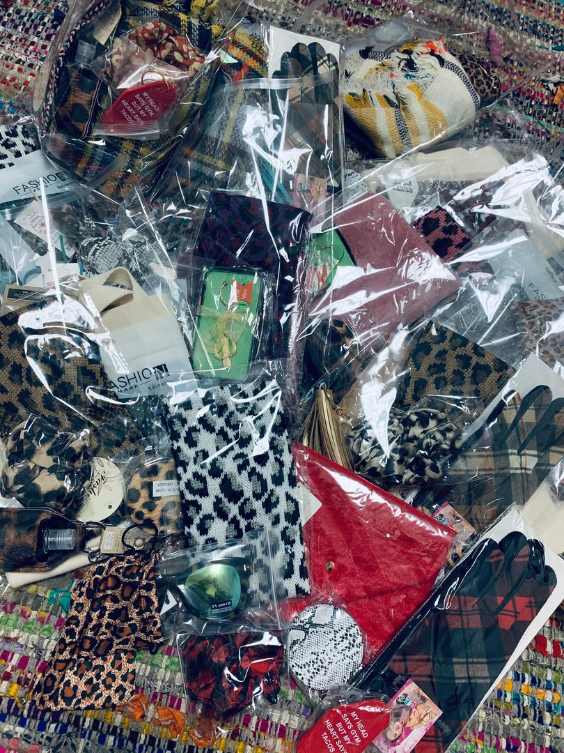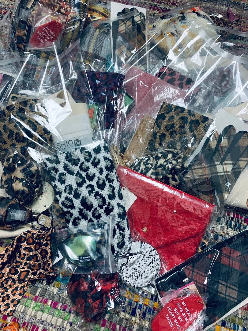 Stocking stuffers are the perfect gift for YOU or someone else! Stocking stuffer bundles will include various items and various sizes. Items range from scarves, totes, clutches, accessories, gloves, key chains, masks, blue light glasses…etc. These are so fun and such a cute gift idea! Each bundle will have 6 items! Valued at over $100!!
