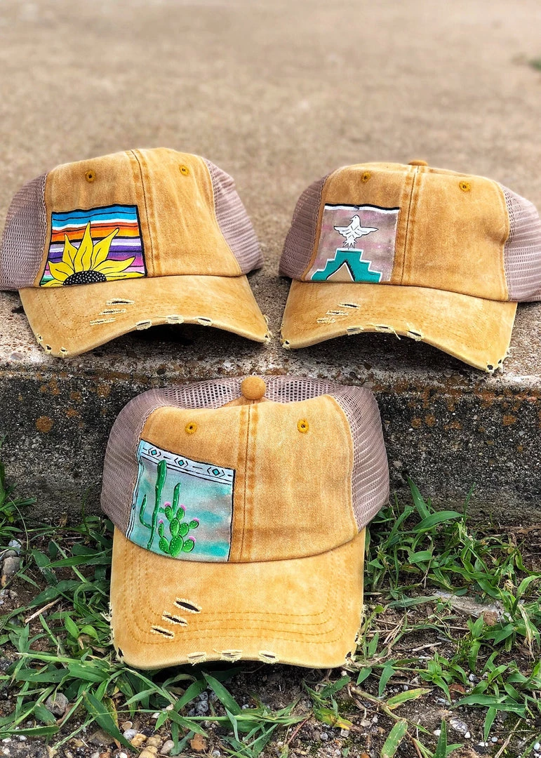 Distressed trucker stylecustom hand painted caps. So cute and perfect for any summer time outfit!!