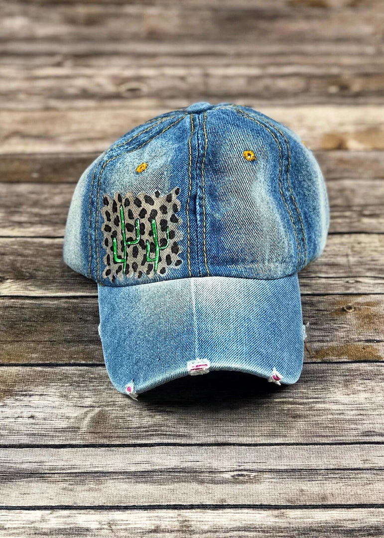 Each cap is one of a kind and hand painted. Adjustable snap back closure with distressing on the bill of the capÂ