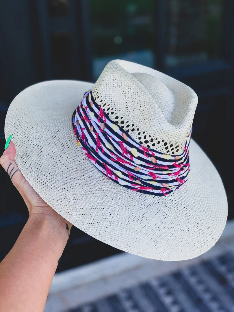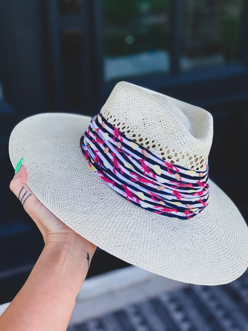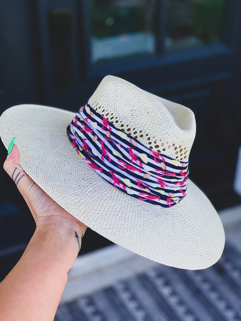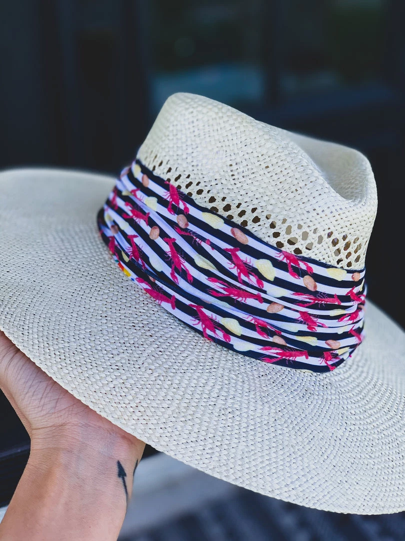 Where’s all our crawfish lovers?! We have something just for you babe! The perfect head band hat bands have officially landed. Black and white striped crawfish headband hatbands are super stretchy and composed of a super soft light weight, breathable NO headache material. Band features black and white striped pattern, crawfish, corn, and potatoes..YUM! We love to wear these on as a headband styled with a messy bun, perfect to wear to the river and lake! Bands are also PERFECT to style on your favorite Charlie 1 Horse hat as a hatband – WOW, so cute!! Place the band around the crown of your favorite hat and easily fix the hatband to your liking. How will you style it?! 😉