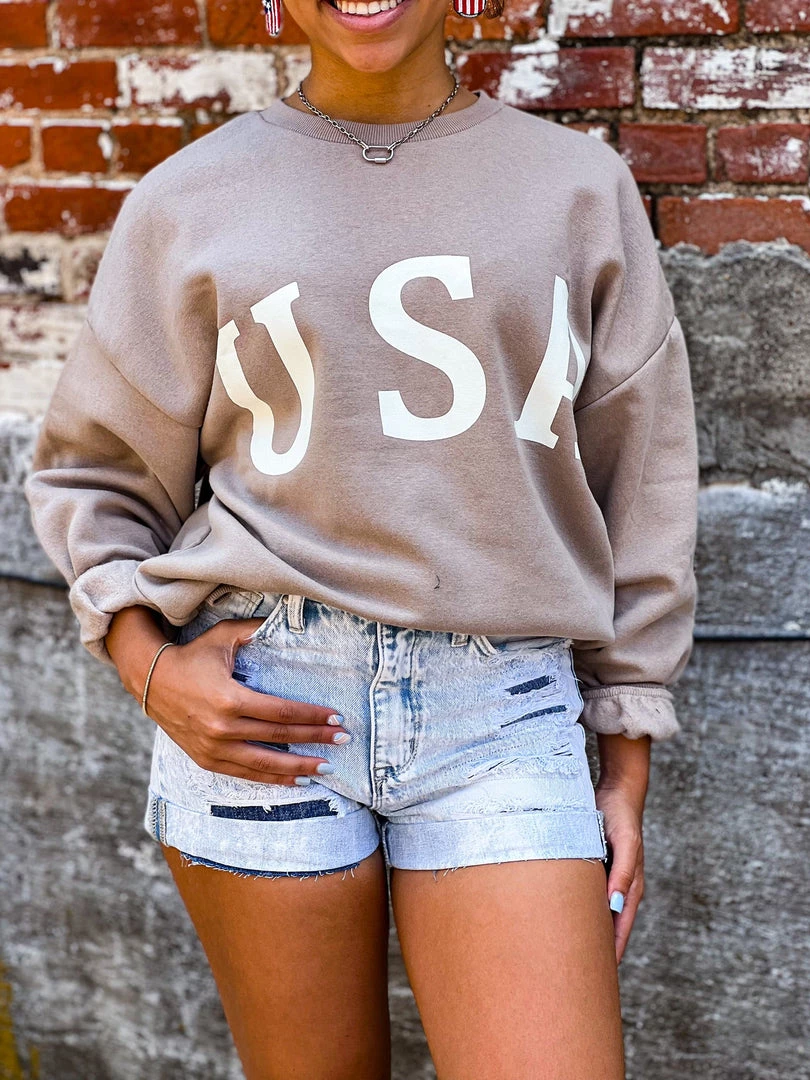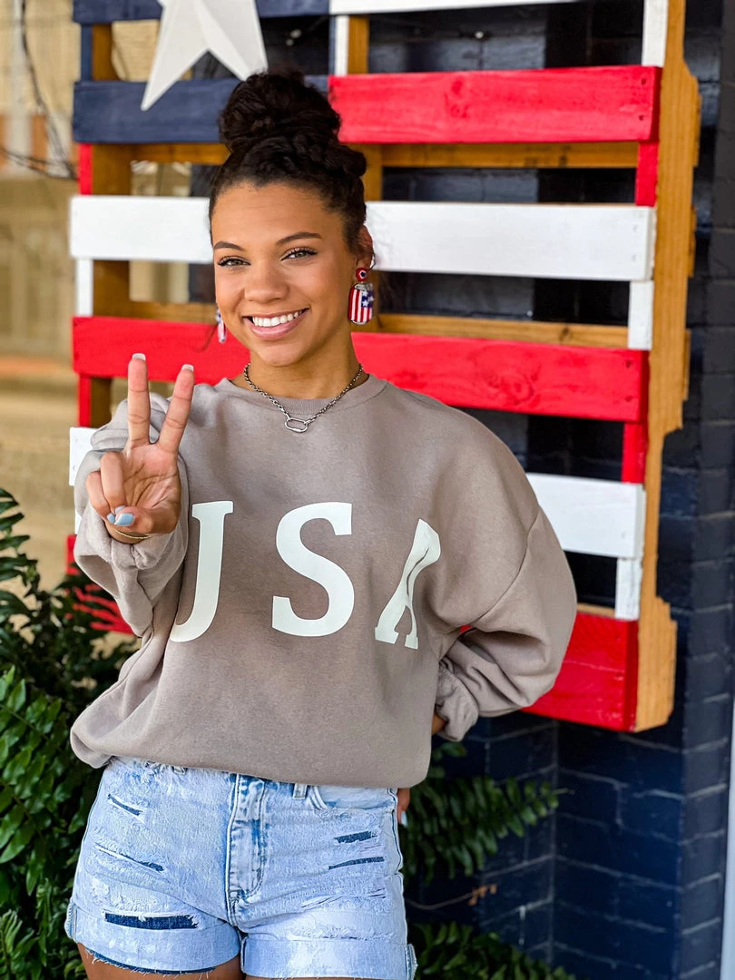 - Our new go to comfy and cute USA sweatshirt in ash mocha