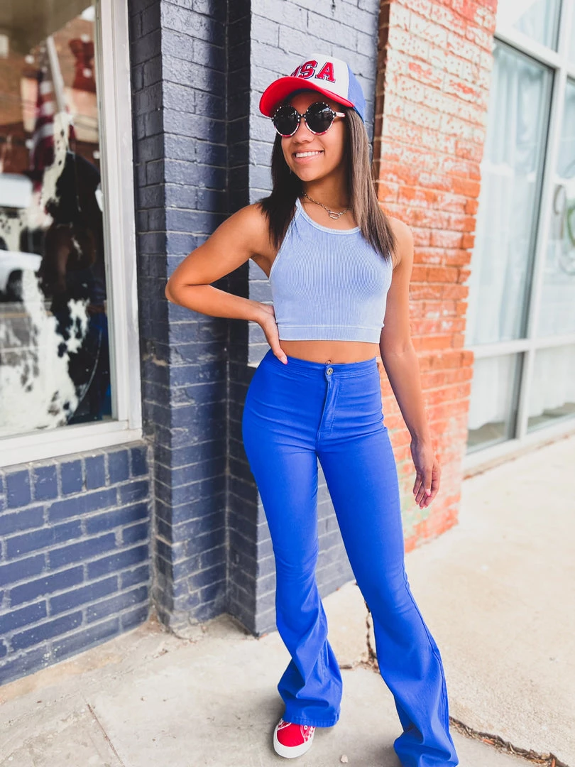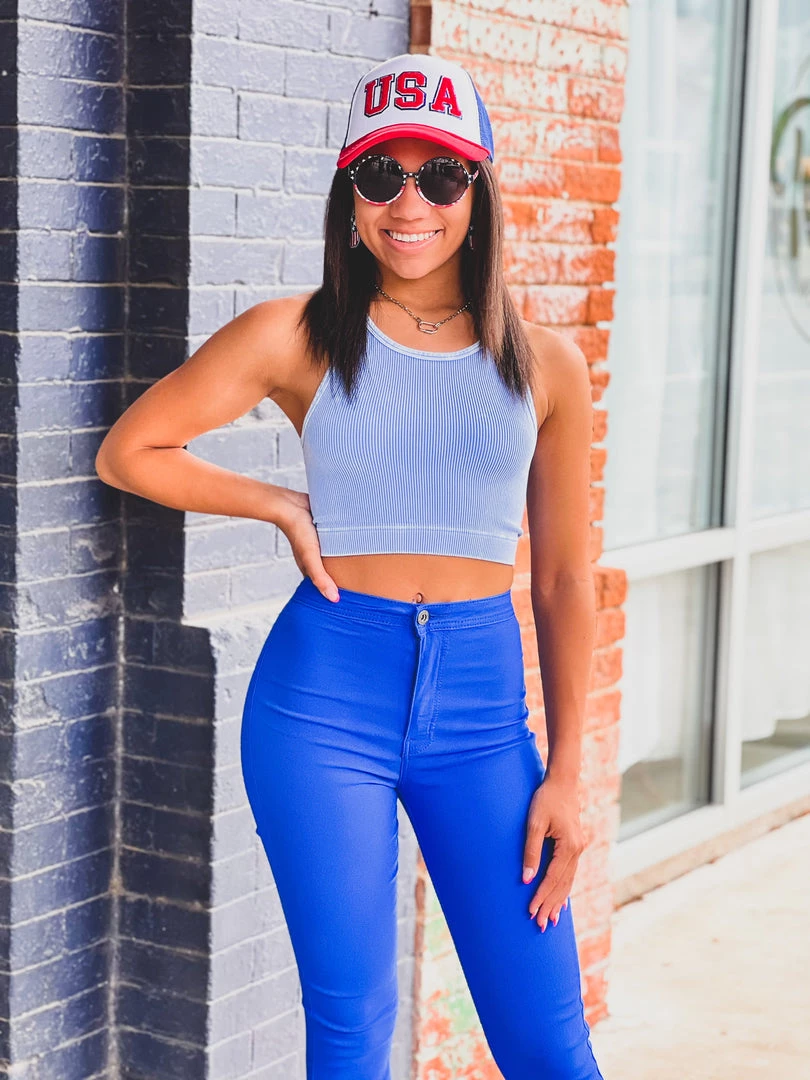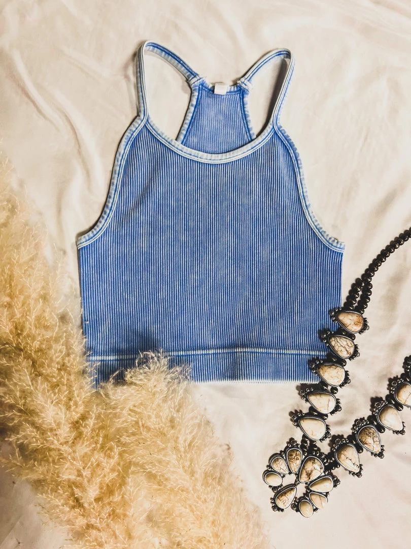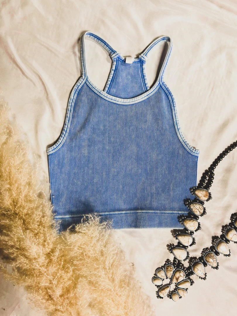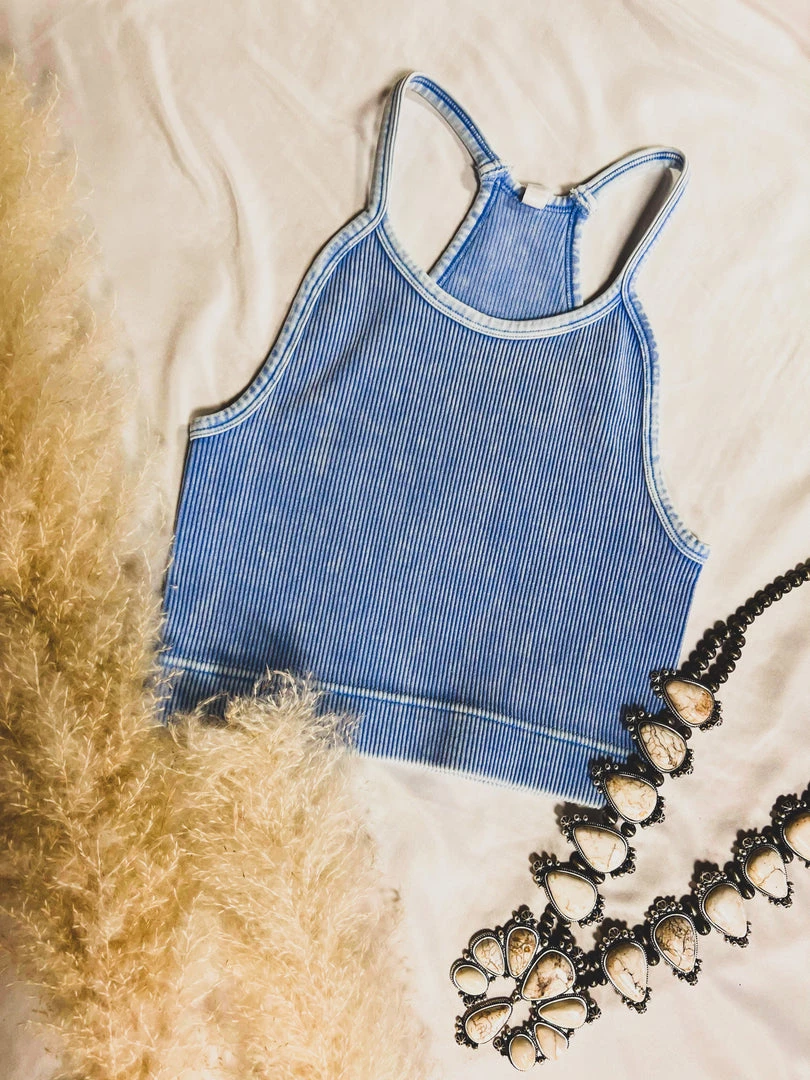 - Fun and cute slate blue vintage mineral washed brami crop top
